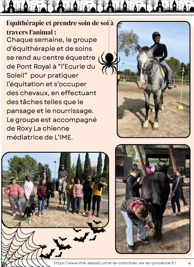 Photos des activités assistées par le chien, le poney, l'équitation et soins aux animaux de la ferme.